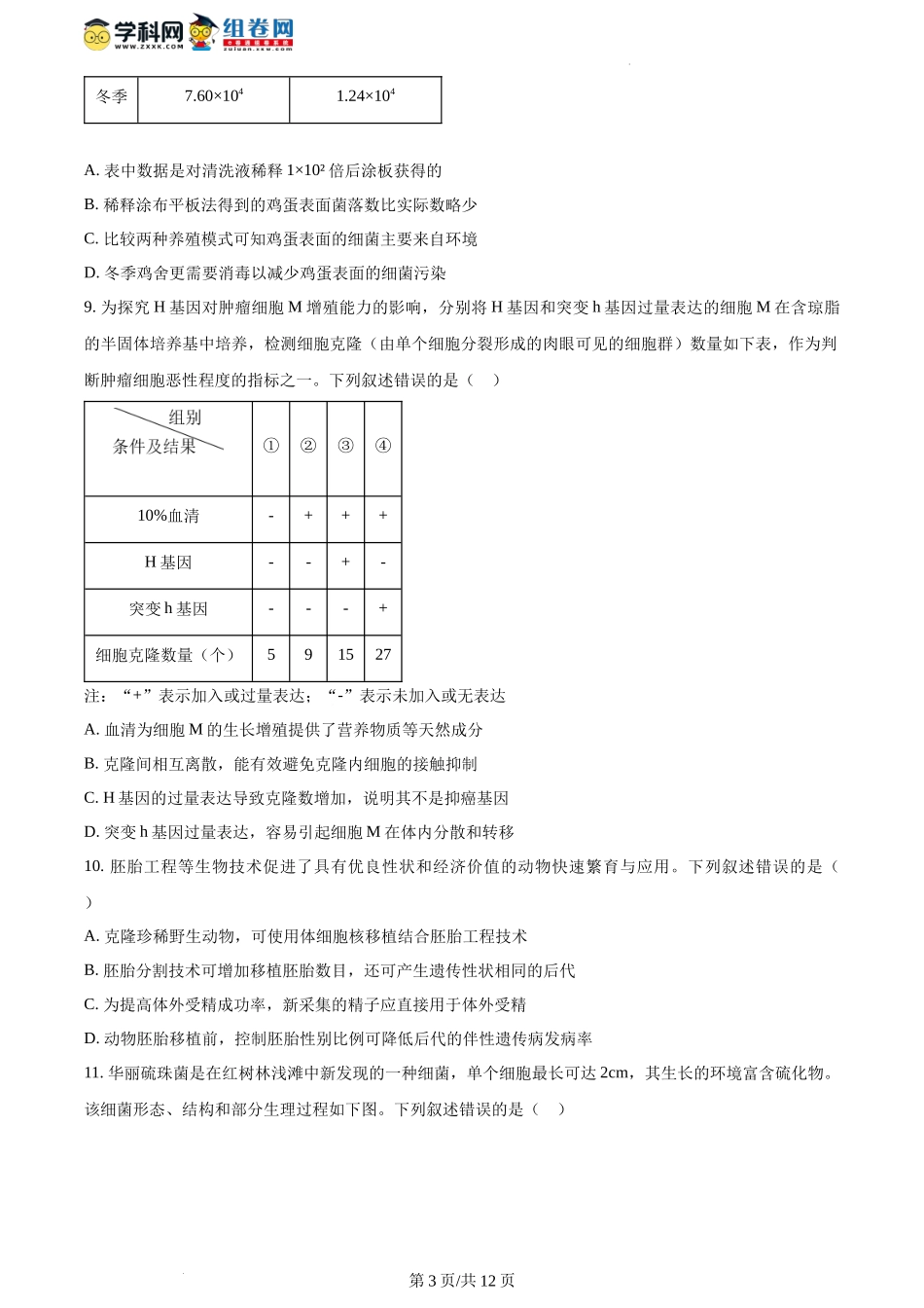 精品解析:2024年1月吉林黑龙江普通高等学校招生全国统一考试适应性测试(九省联考)生物试题(原卷版).docx_第3页