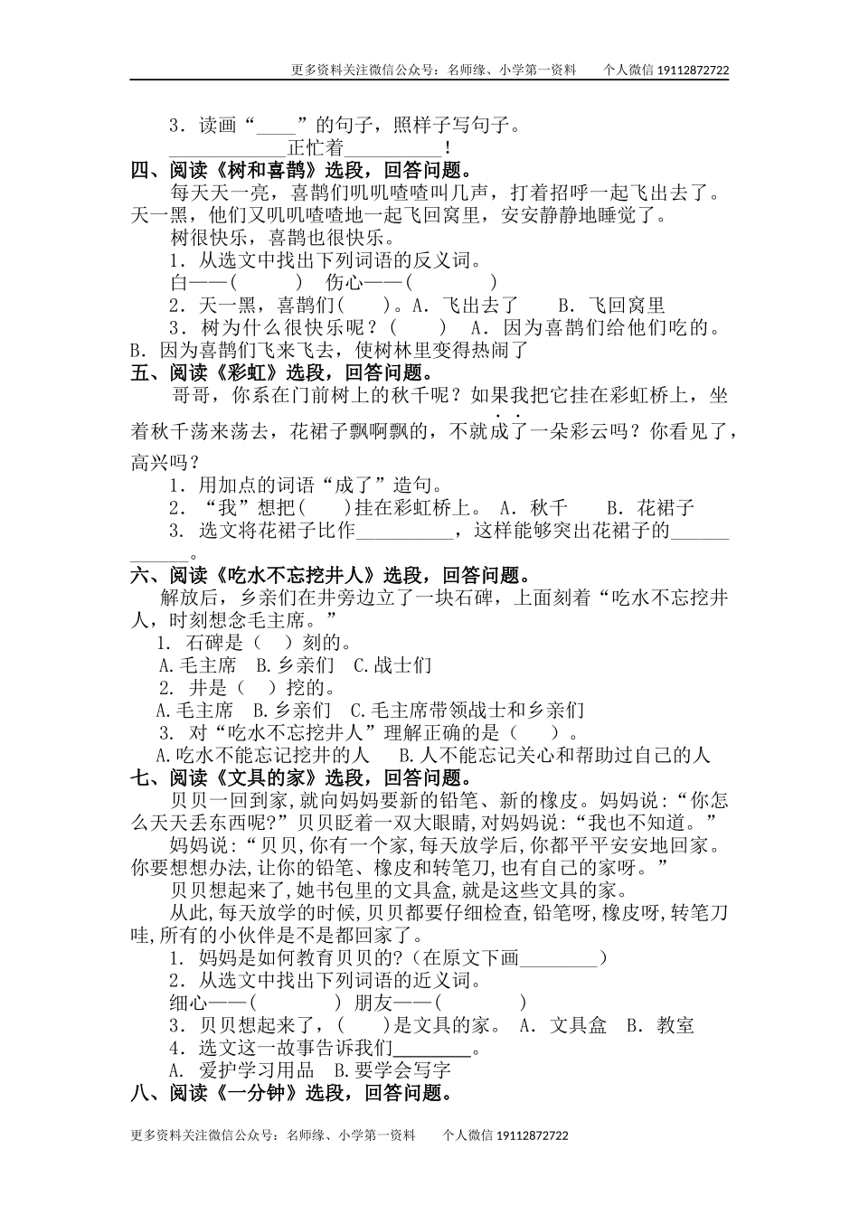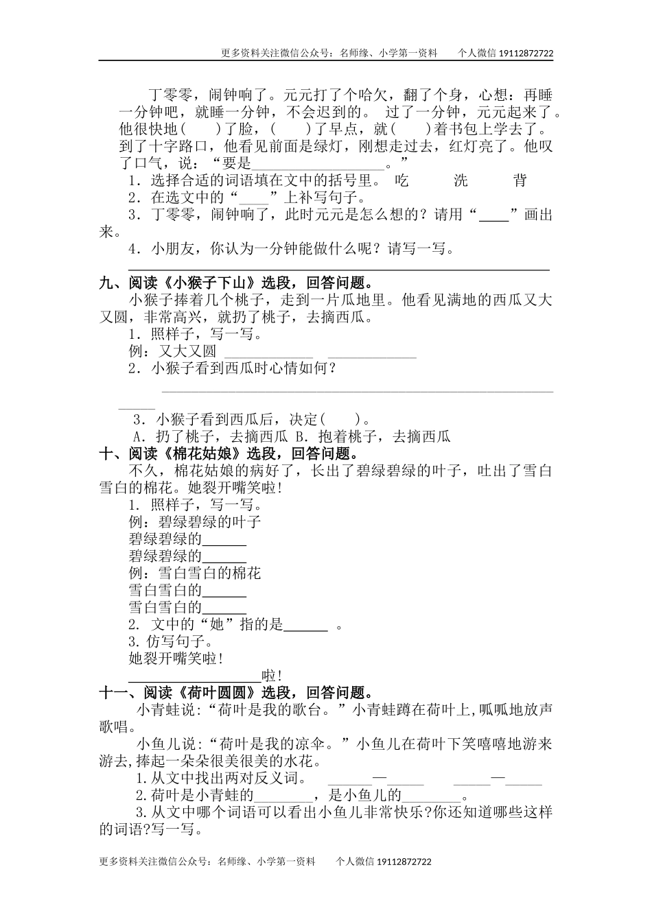 更多资料关注微信公众号:名师缘、小学第一资料个人微信19112872722课内阅读专项一、阅读古诗,回答问题(一)池上小娃撑小艇,偷采白莲回。不解藏踪迹,浮萍一道开。1.这首诗的作者是唐代诗人()。A.白居易B....