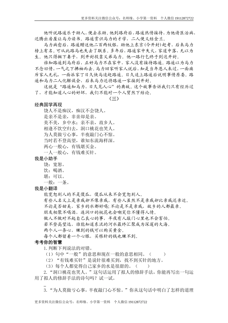 更多资料关注微信公众号:名师缘、小学第一资料个人微信19112872722《增广贤文》(一)经典国学再现昔时贤文,诲汝谆谆,集韵增文,多见多闻。观今宜鉴古,无古不成今。知己知彼,将心比心。酒逢知己饮,诗向会人...