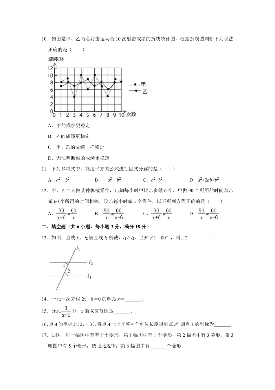 2020年广西柳州市中考数学试卷(空白卷).pdf_第3页