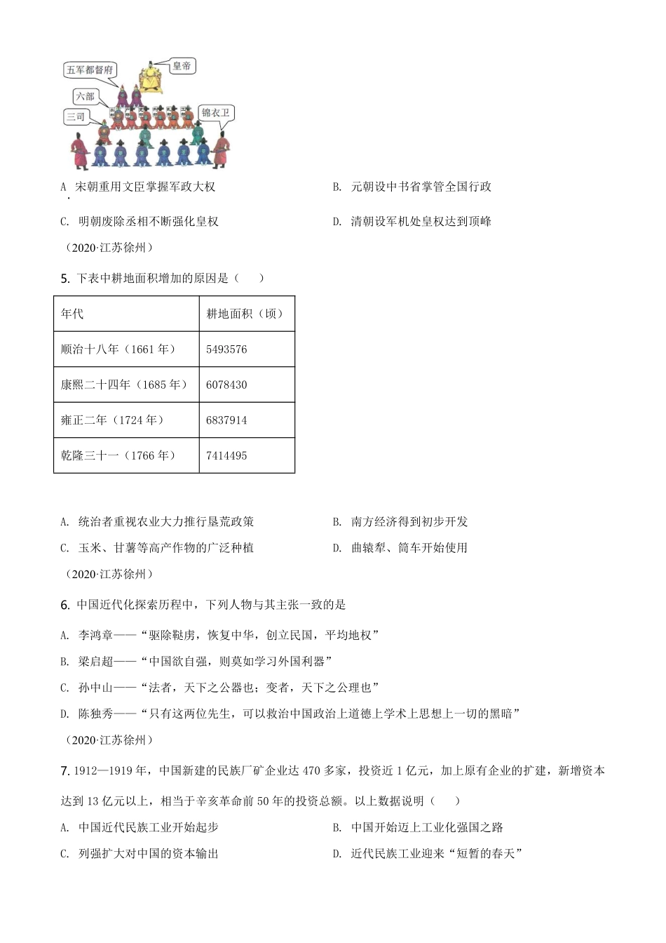 2020年江苏省徐州市中考历史试题及答案.pdf