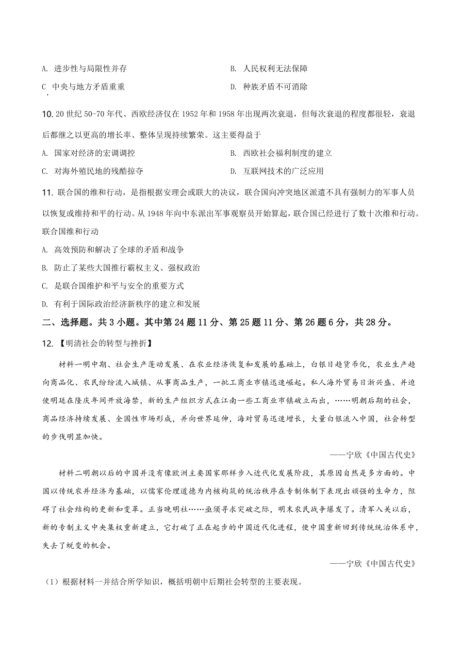 2021年湖北省黄冈、孝感、咸宁中考历史试题(原卷版).pdf_第2页
