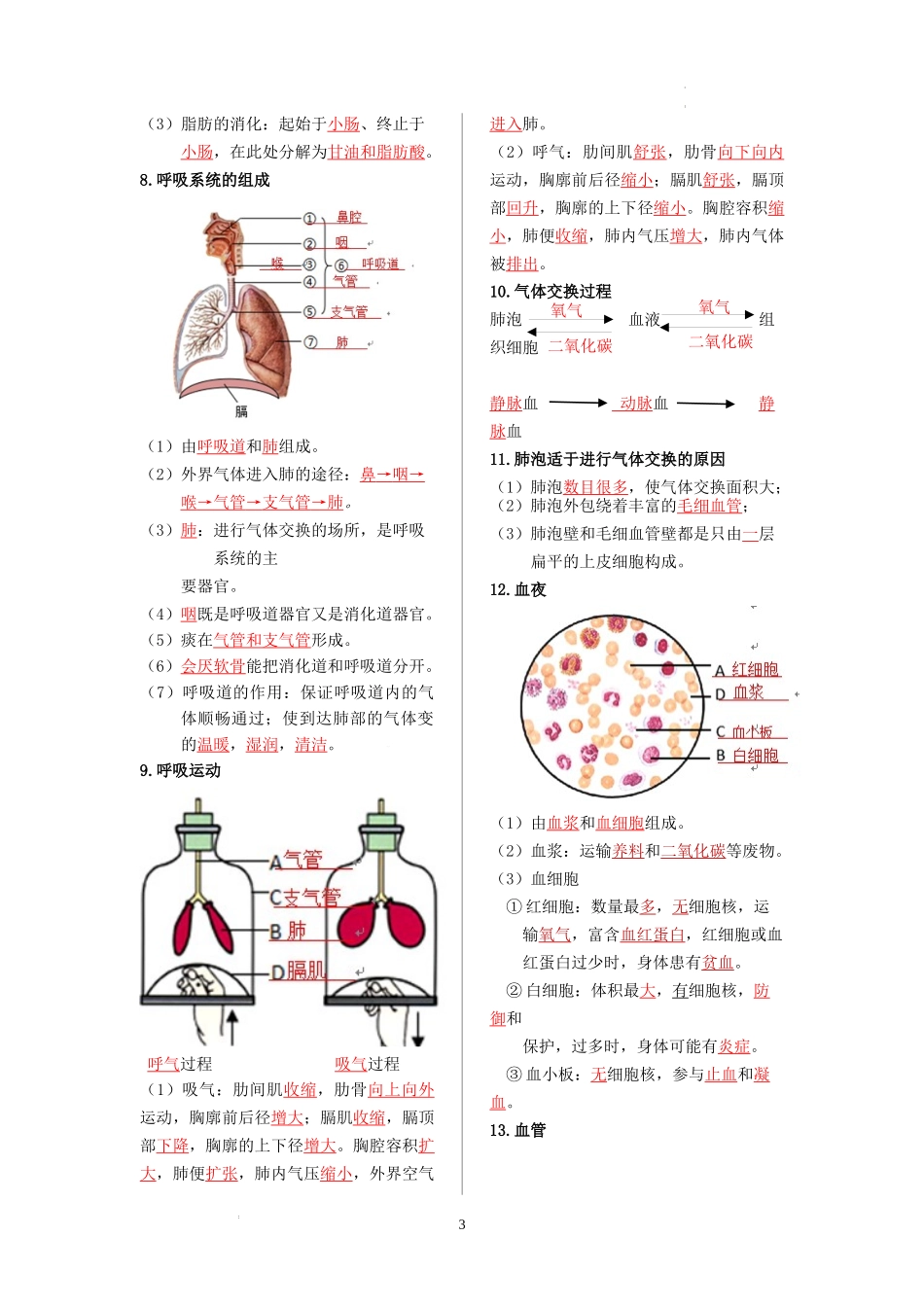 【七年级下册生物人教版】【核心记背册】备战2023年中考生物核心考点精华必背.docx_第3页