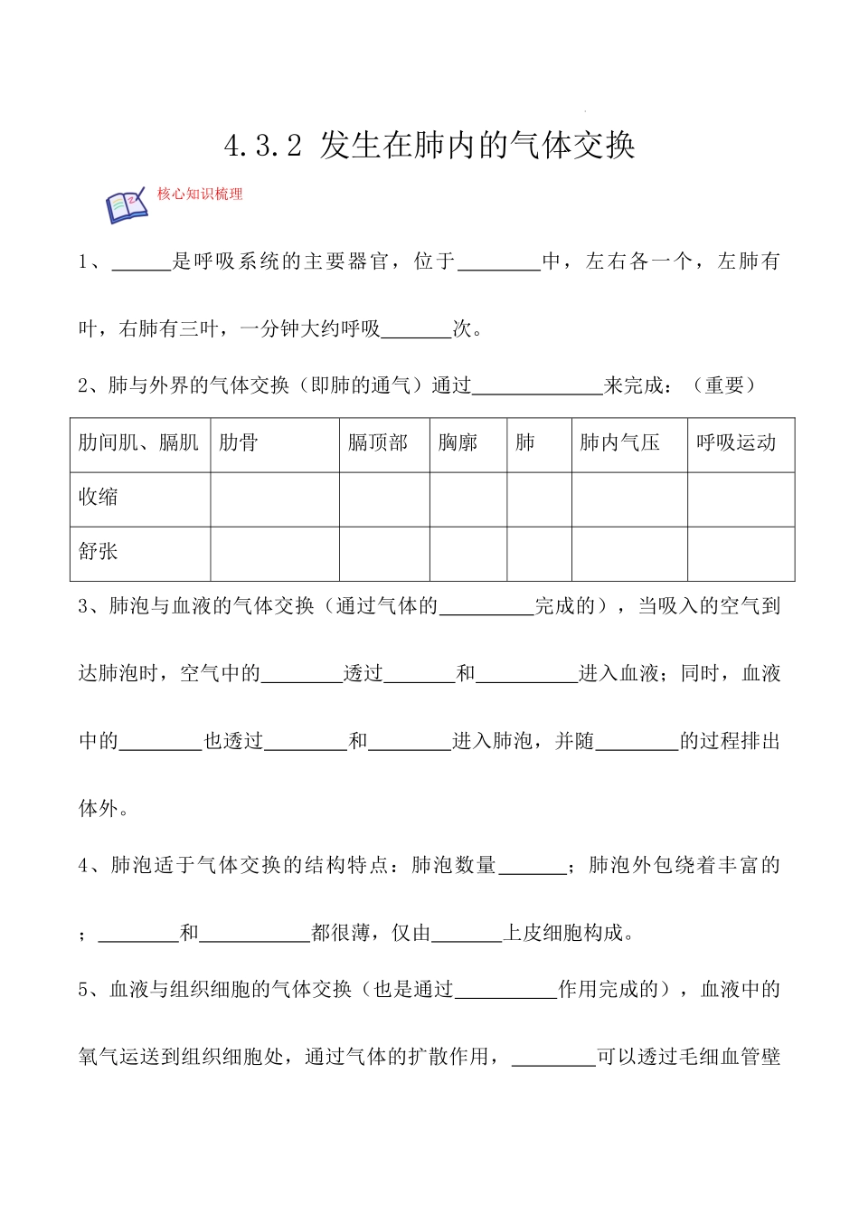 【七年级下册生物人教版】4.3.2 发生在肺内的气体交换(原卷版+解析版).docx