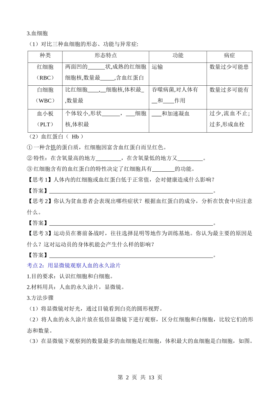 【七年级下册生物人教版】默写-第四单元 第四章 人体内的物质运输.docx_第2页