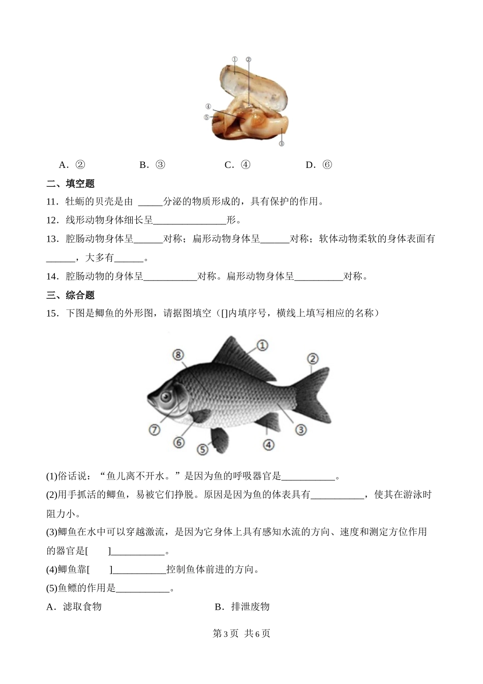 【七年级下册生物苏科版】第10章 水中的生物 单元测试.docx_第3页