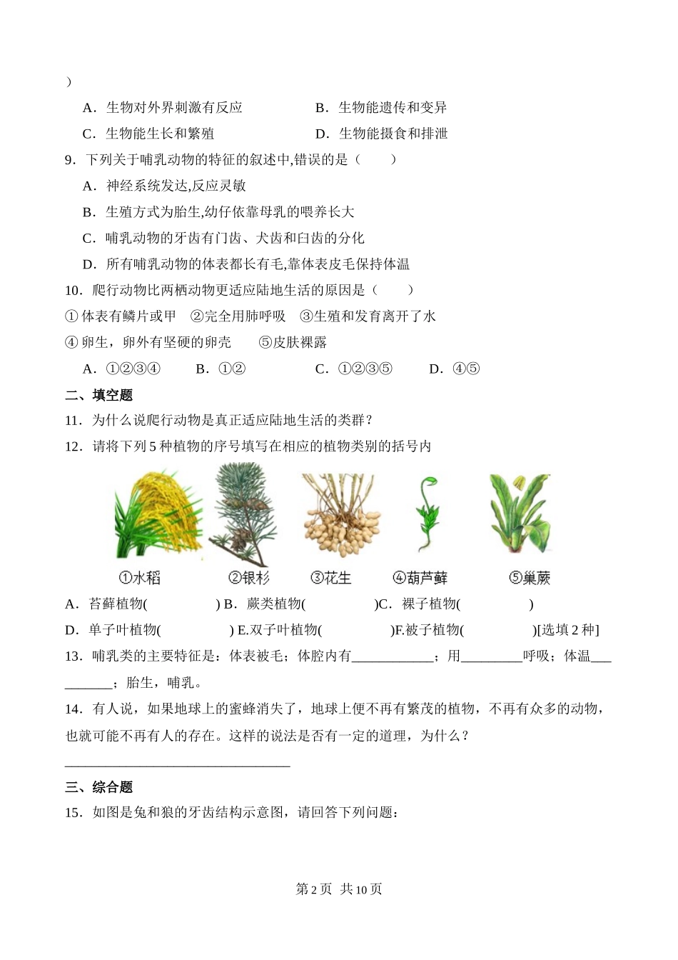 【七年级下册生物苏科版】第11章 地面上的生物 单元测试.docx_第2页
