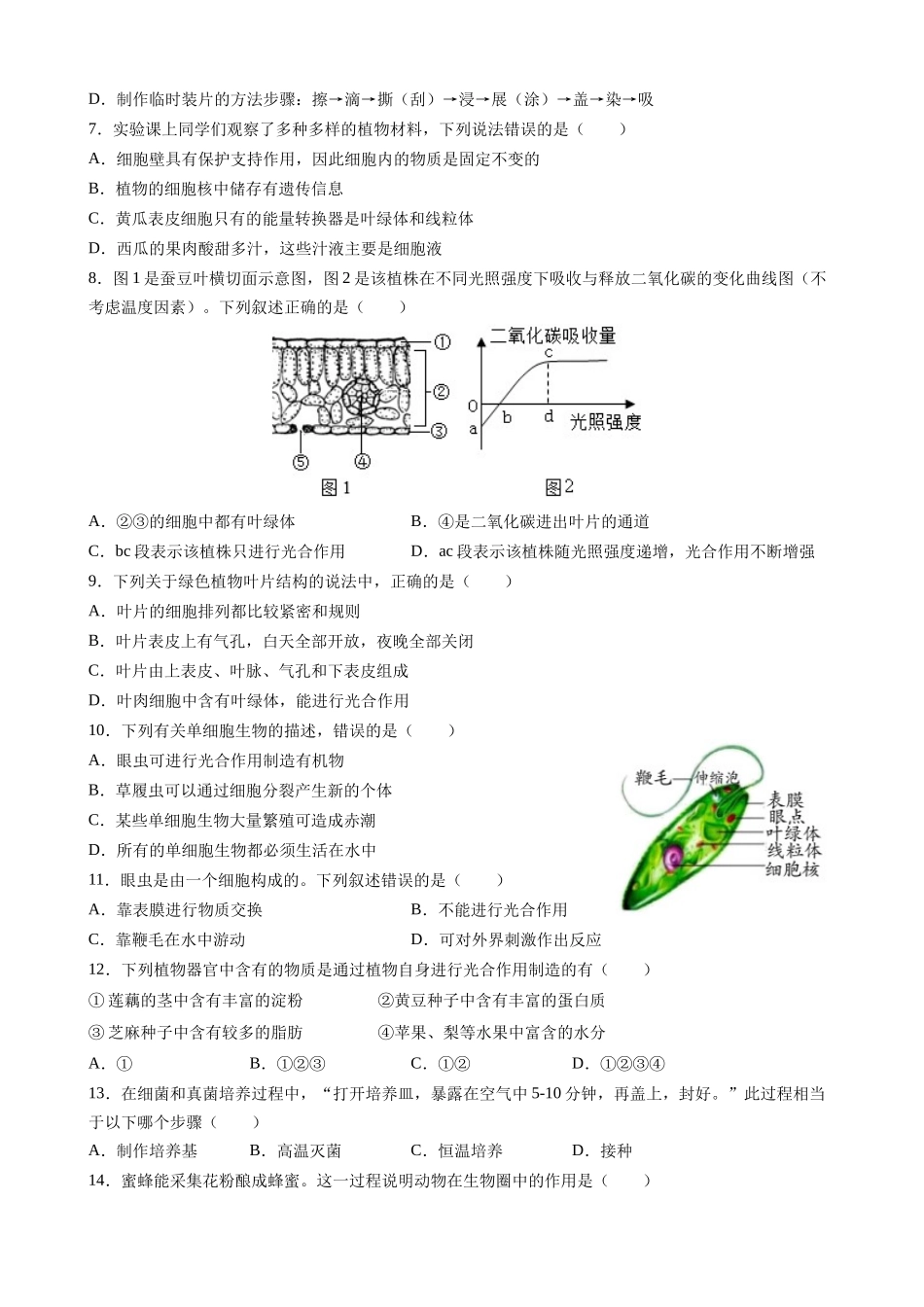 【七年级下册生物苏科版】期末测试卷03.docx_第2页