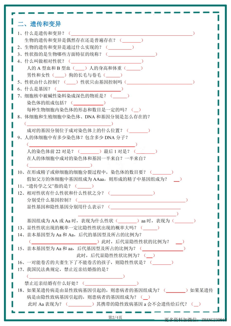 2024年生物中考一轮复习:八下生物核心考点背记提纲(默写)..pdf_第2页