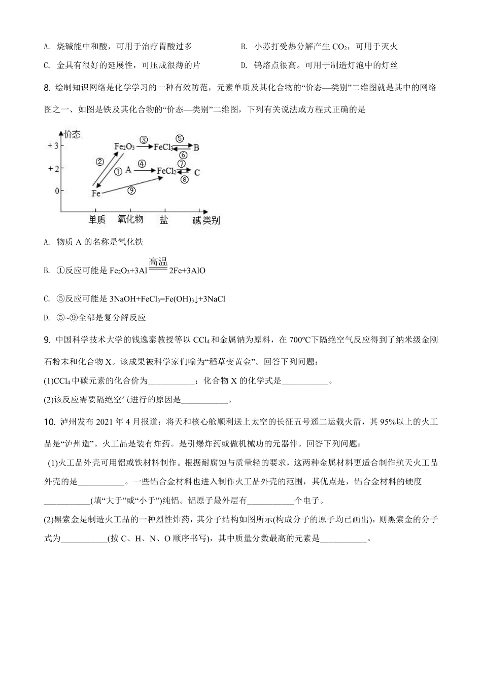 精品解析:四川省泸州市2021年中考化学试题(原卷版).pdf