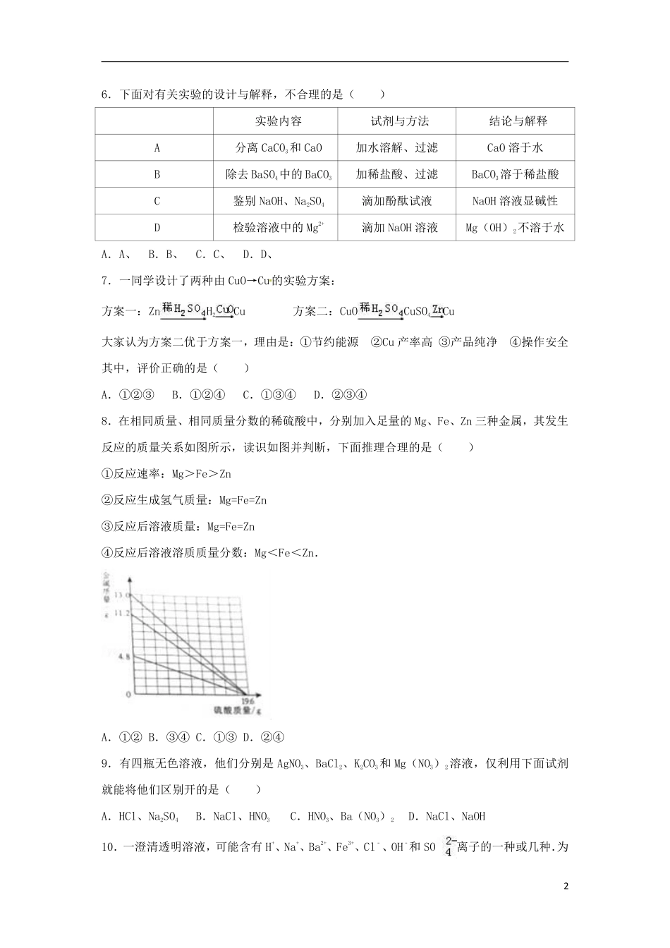 山东省济宁市2017年中考化学真题试题(含解析).pdf_第2页