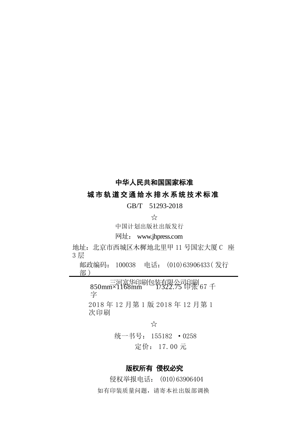 城市轨道交通给水排水系统技术标准Technicalstandardforwatersupplyanddrainagesystemofurbanrailtransit2018-11-01发布2019-04-01实施UDC中华人民共和国国家标准中华人民共和国住房和城乡建设部国家市场监督管理...