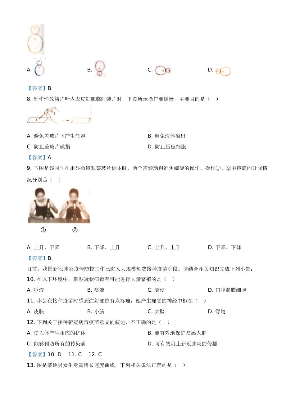 山西省晋中市2021年中考生物试题(含答案).doc_第3页