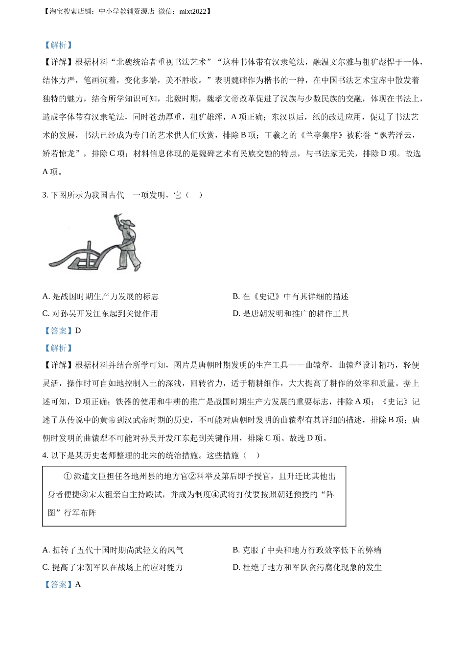 精品解析:2023年重庆市中考历史真题(B卷)(解析版).docx_第2页