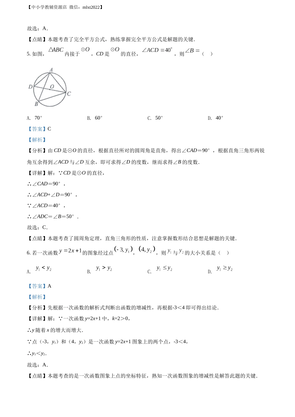 【中小学教辅资源店微信:mlxt2022】2022年甘肃省兰州市中考数学真题一、选择题1.计算的结果是()A.±2B.2C.D.【答案】B【解析】【分析】由于表示4的算术平方根,根据算术平方根的定义即可求出结果.【详解】4的...