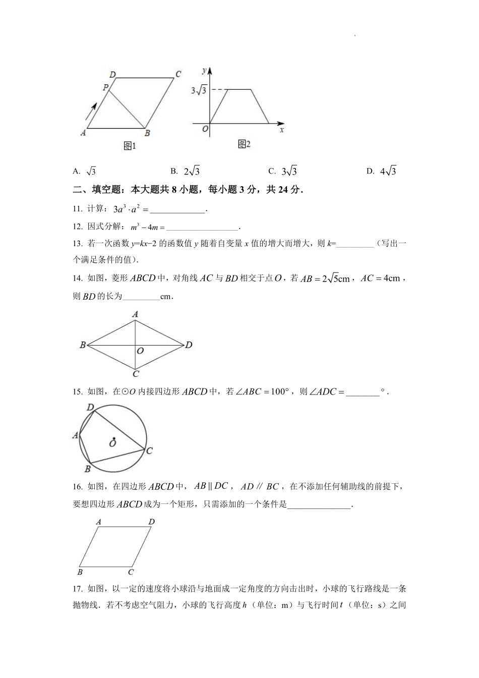 精品解析:2022年甘肃省武威中考数学真题(原卷版).pdf_第3页