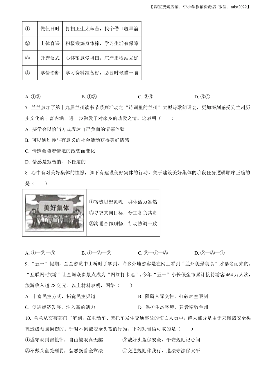 精品解析:2023年甘肃省兰州市中考道德与法治真题(原卷版).pdf_第3页