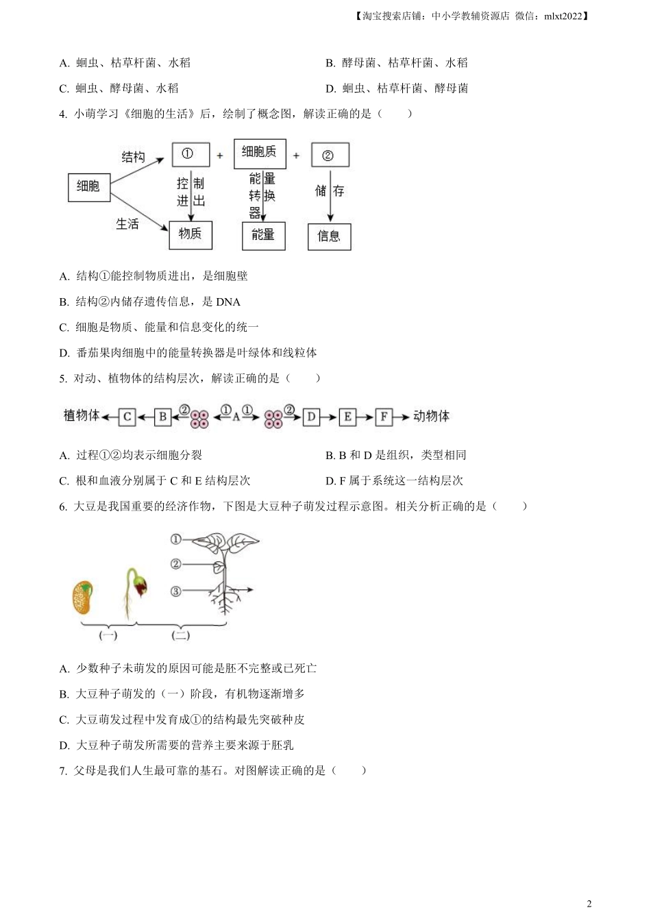 精品解析:2023年湖北省宜昌市中考生物真题(原卷版).pdf_第2页