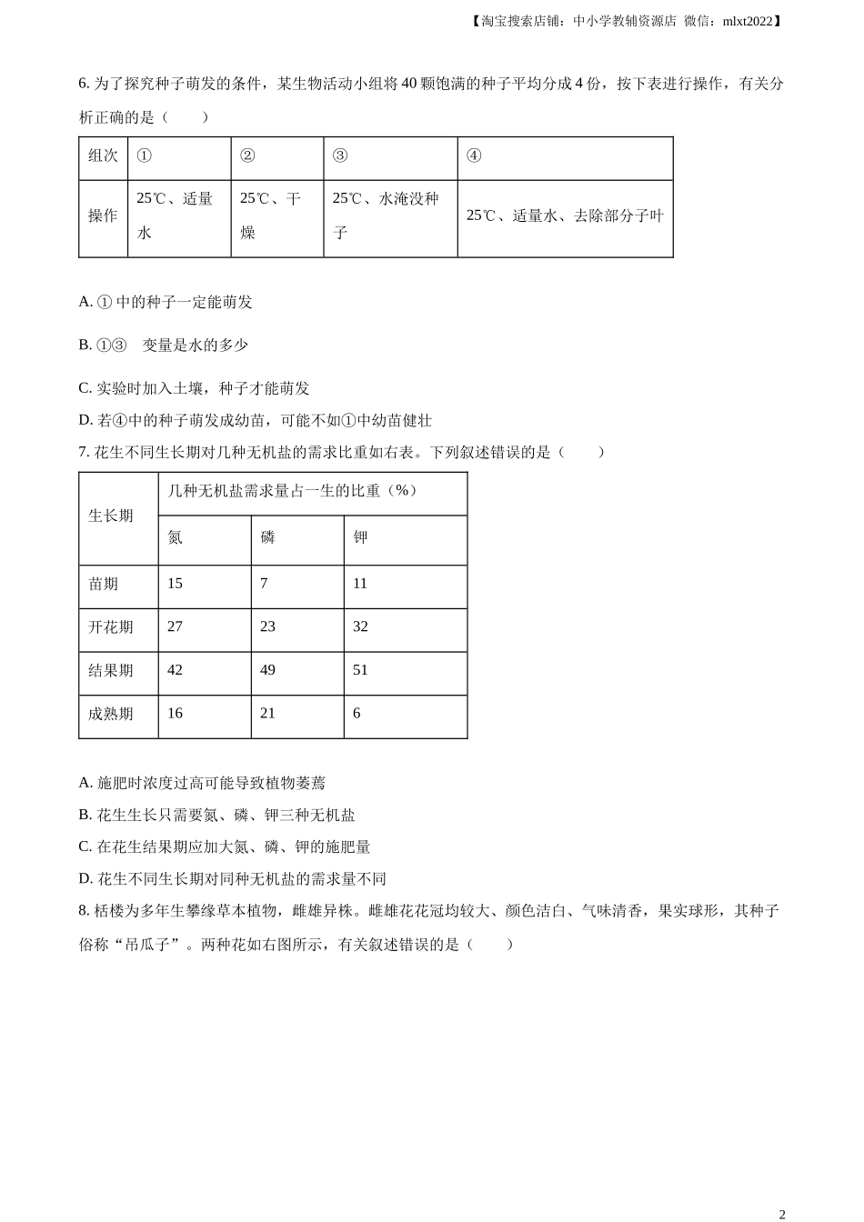 精品解析:2023年湖南益阳中考生物真题(原卷版).docx_第2页