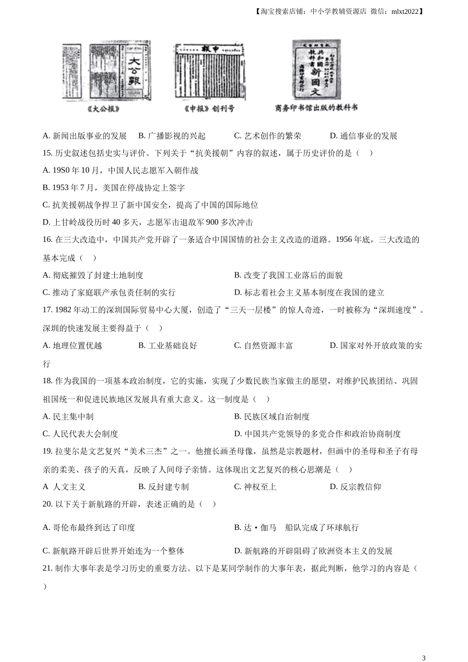 精品解析:2023年云南省中考历史真题(原卷版).docx_第3页