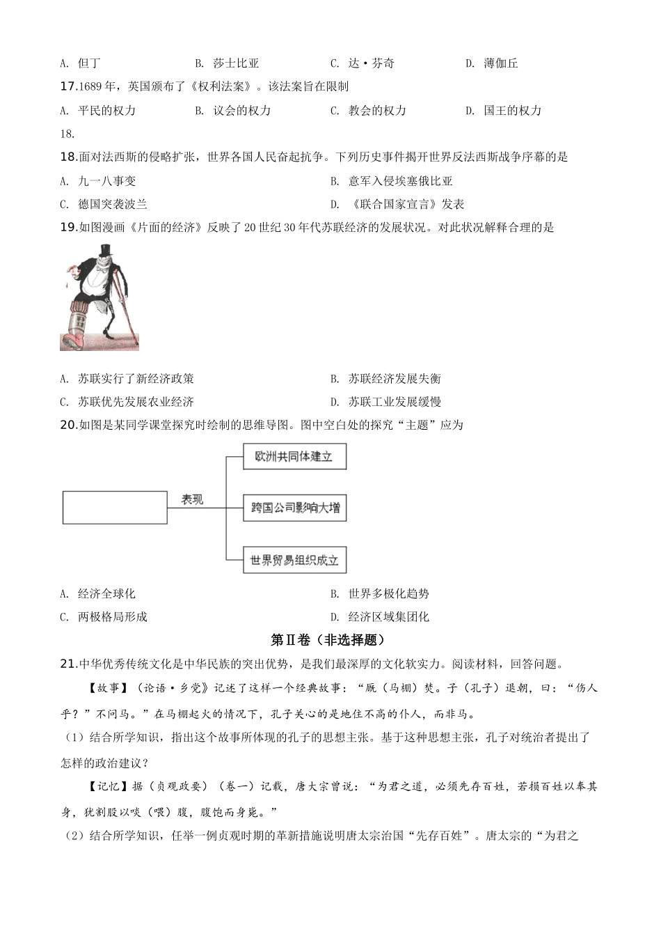 精品解析:山东省济宁市2020年中考历史试题(原卷版).doc_第2页