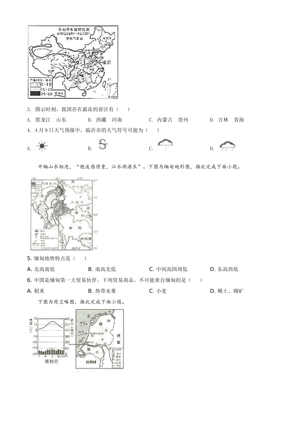 精品解析:山东省临沂市2020年中考地理试题(原卷版).doc_第3页