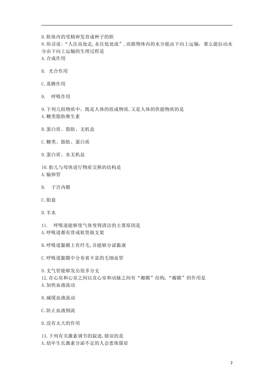安徽省芜湖市2018年中考生物真题试题(含答案).pdf_第2页