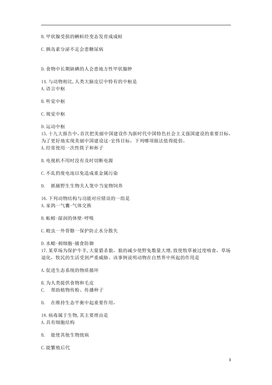 安徽省芜湖市2018年中考生物真题试题(含答案).pdf_第3页