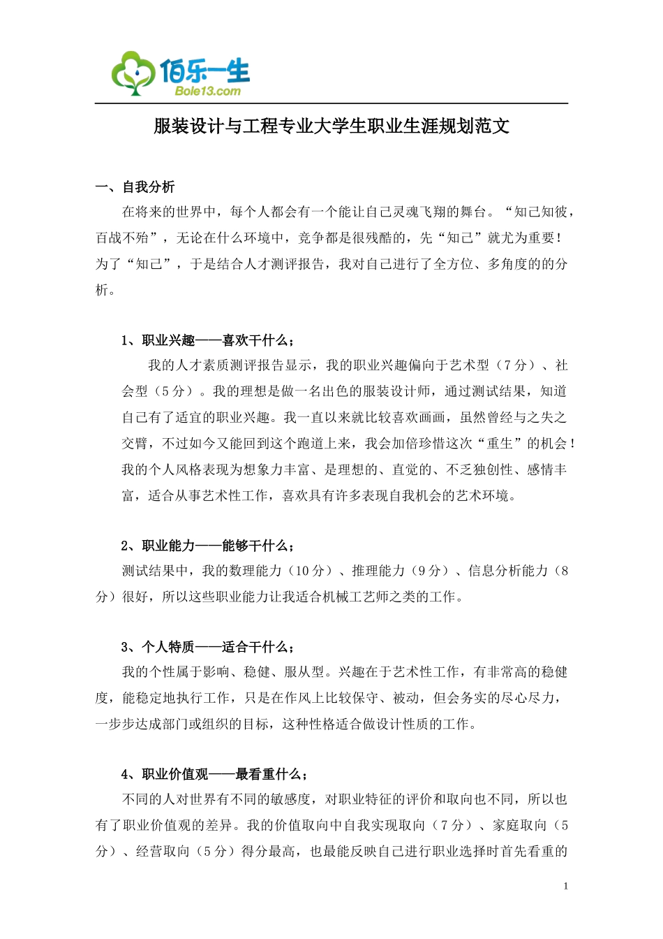 服装设计与工程专业大学生职业生涯规划范文.docx_第1页