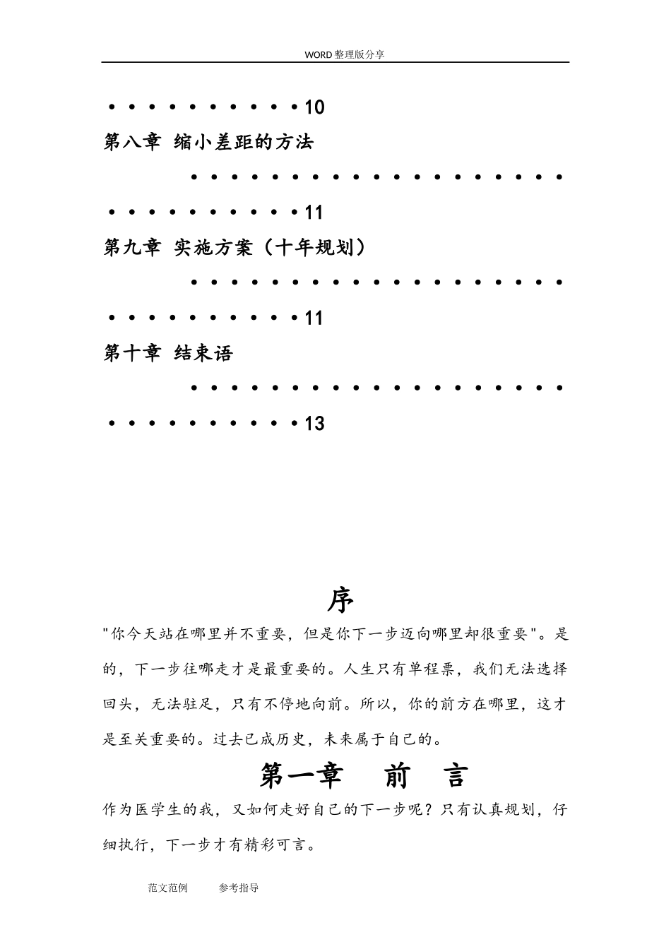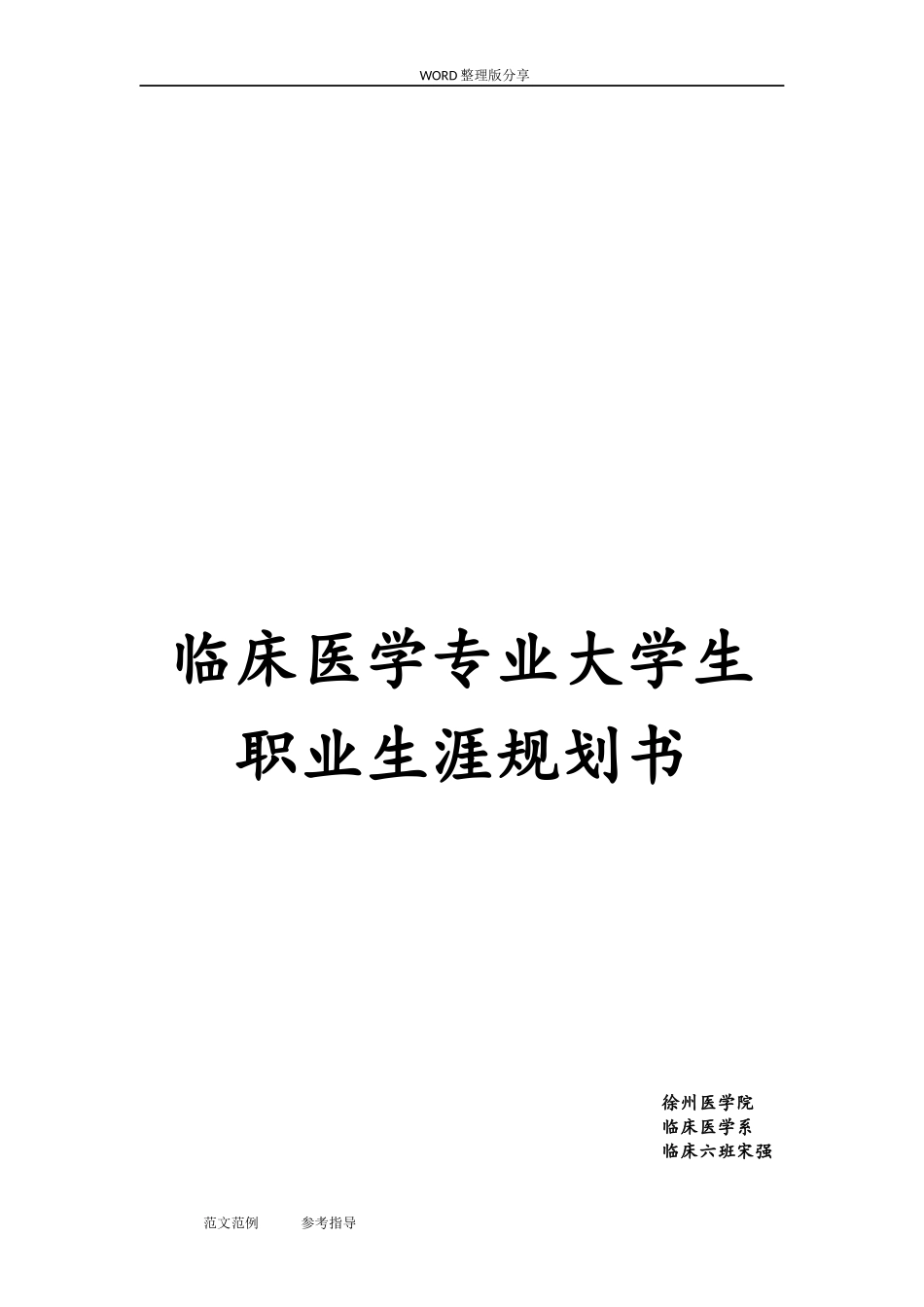 WORD整理版分享临床医学专业大学生职业生涯规划书徐州医学院临床医学系临床六班宋强范文范例参考指导WORD整理版分享目录第一章前言······························3第二章个人分...