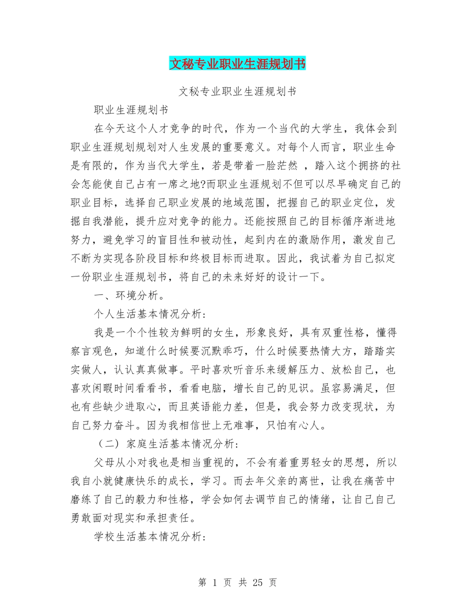 文秘专业职业生涯规划书(完整版).doc_第1页