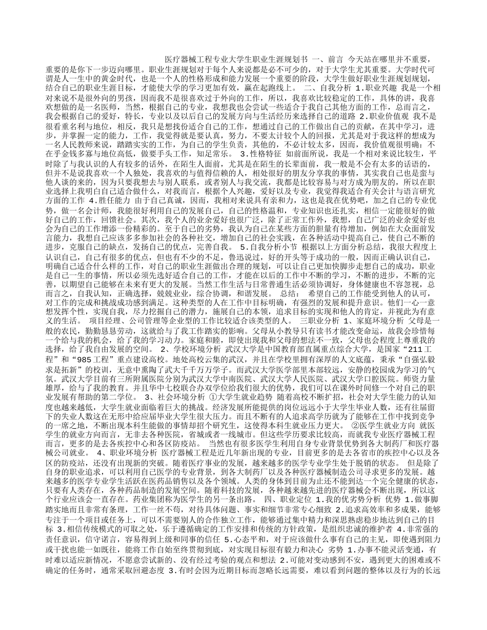 医疗器械工程专业大学生职业生涯规划书 (1).doc