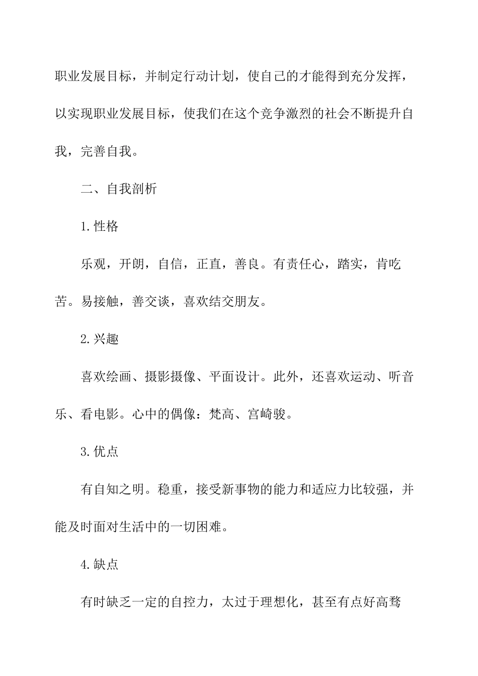 影视后期制作专业大学生职业生涯规划书一、前言以前的我,对职业规划没什么概念,因为“计划永远赶不上变化”,与其花时间去规划今后的人生,还不如把时间花在现在正在奋斗的事情上。可是,在学了《大学生职业生...