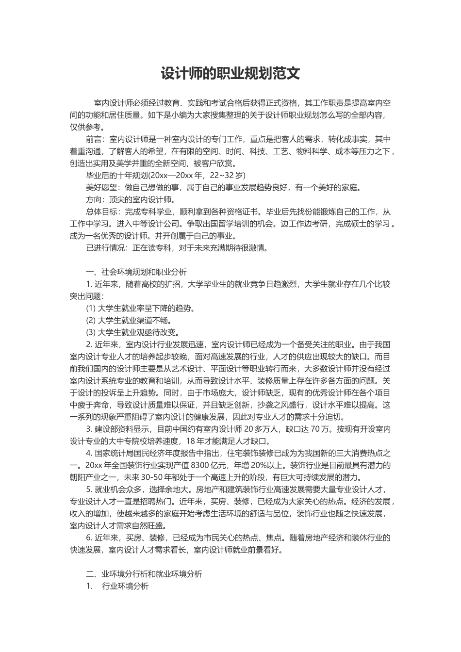 专业室内设计师个人职业规划-含封面.docx_第2页