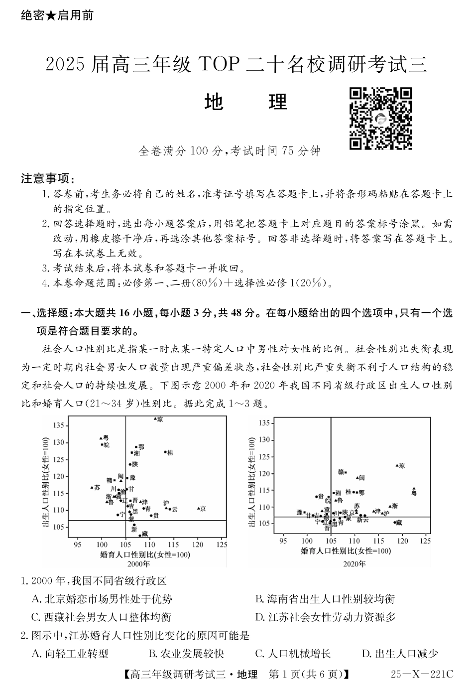 25 届高三年级 河南省TOP二十名校调研考试三地理试卷.pdf