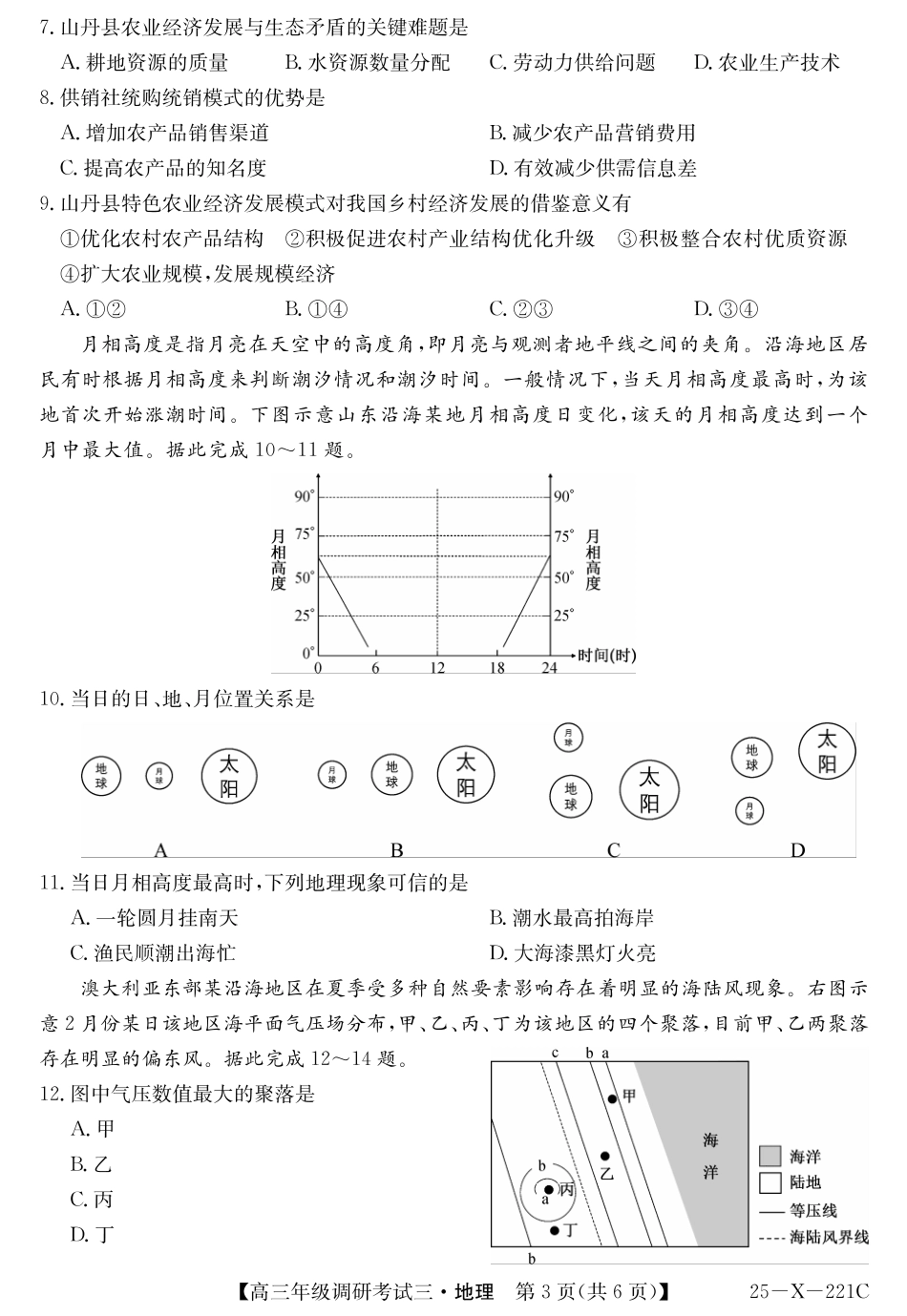 25 届高三年级 河南省TOP二十名校调研考试三地理试卷.pdf_第3页