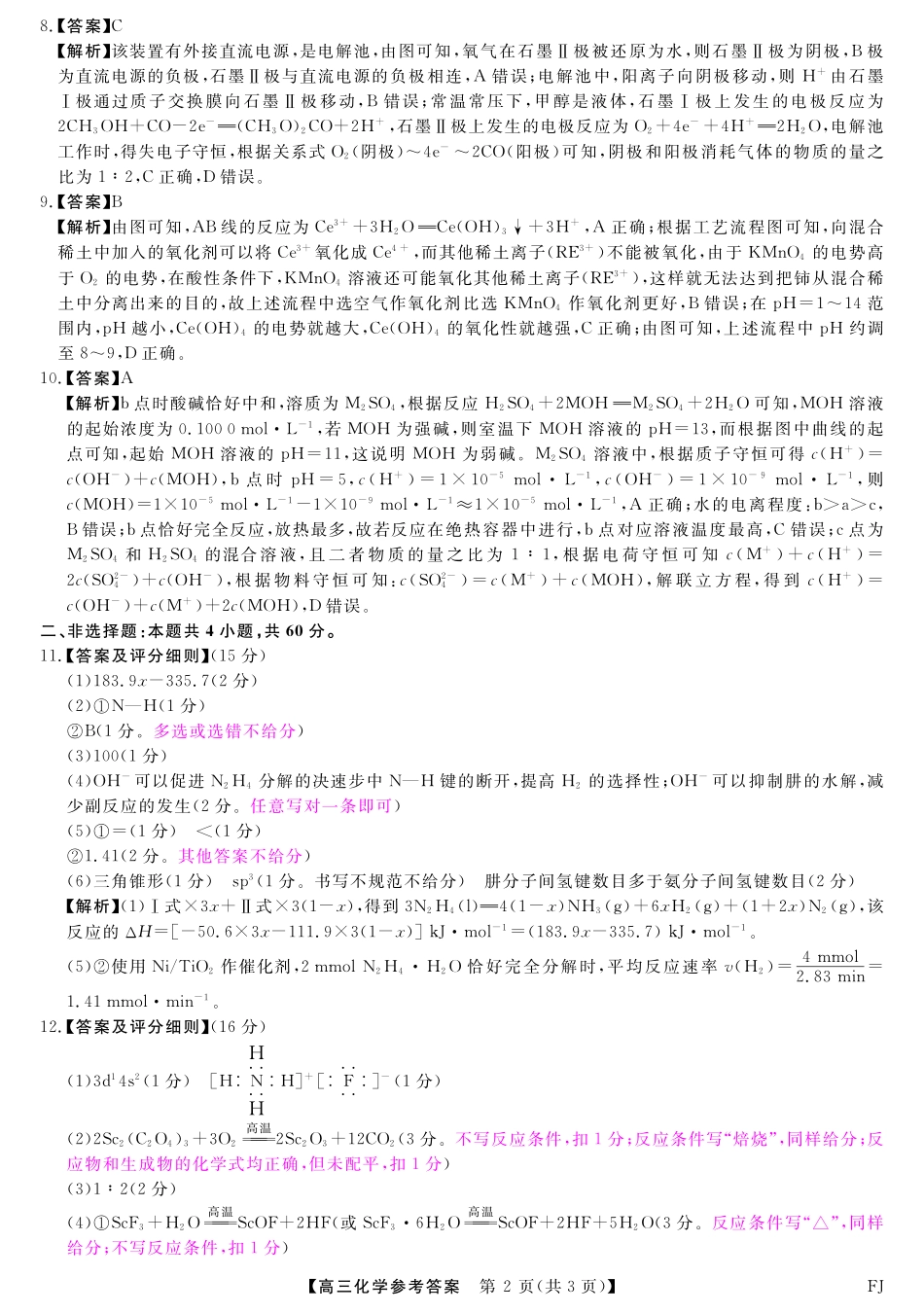 福建省金科大联考2024-2025学年高三12月测评化学试题答案.pdf_第2页