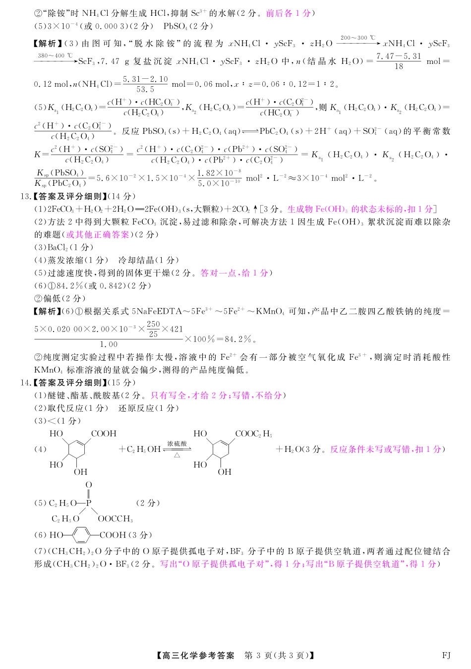 福建省金科大联考2024-2025学年高三12月测评化学试题答案.pdf_第3页