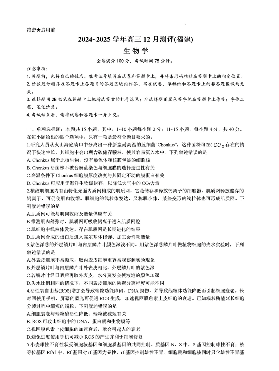 福建省金科大联考2024-2025学年高三12月测评生物.pdf_第1页