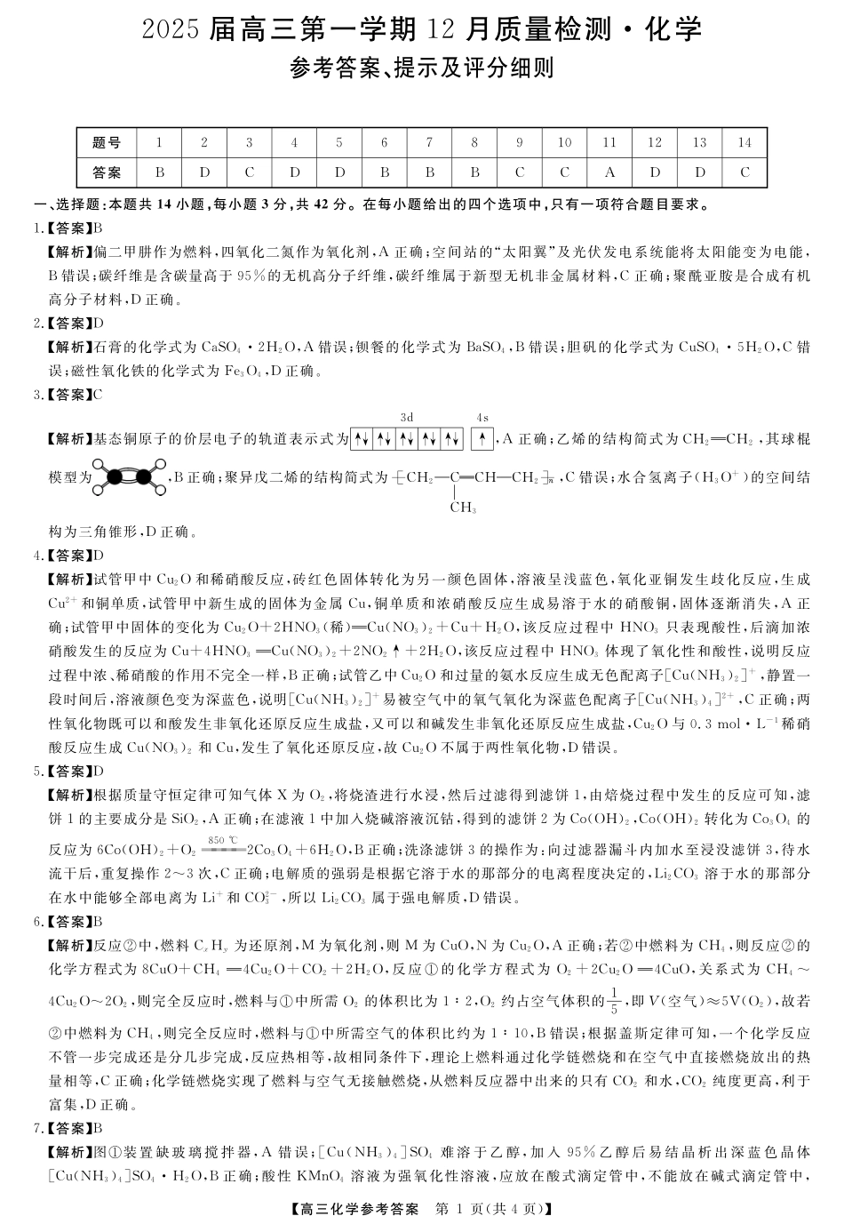 河南省名校联盟2024-2025学年上学期高三12联考-化学答案.pdf_第2页