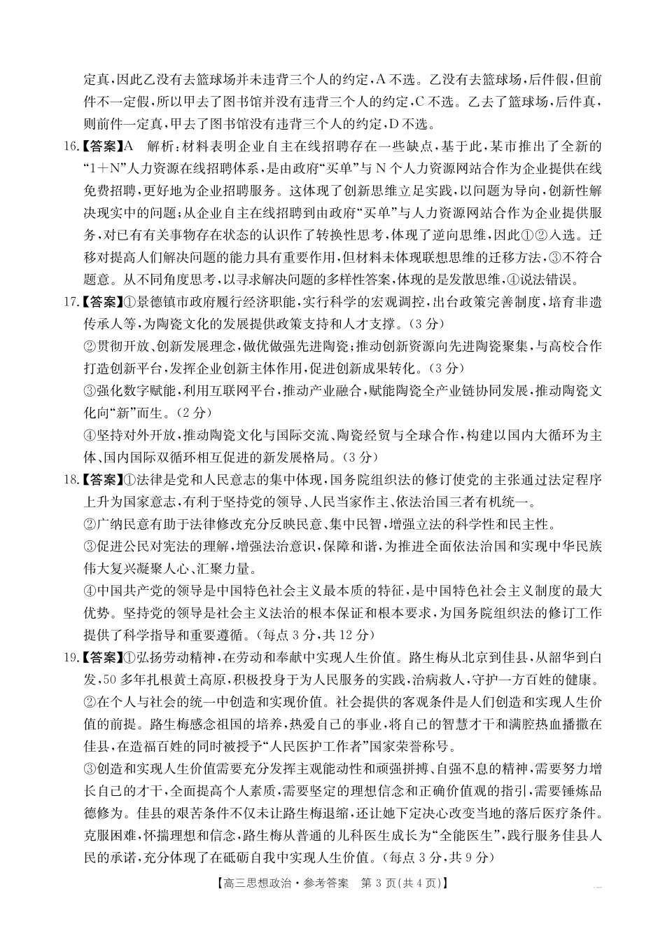 江西省“三新”协同教研共同体2025届高三12月联考政治试题答案.pdf_第3页