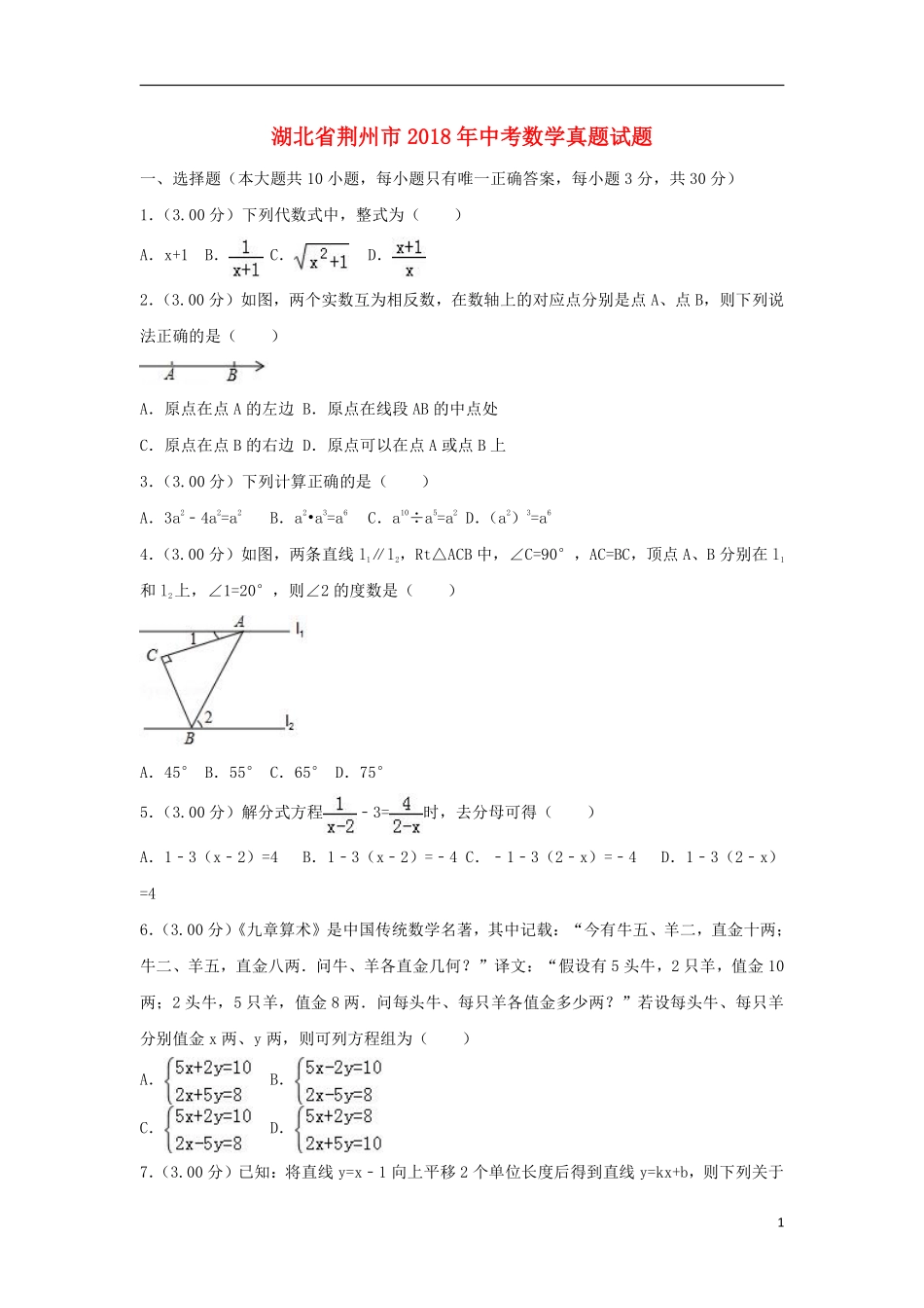 湖北省荆州市2018年中考数学真题试题(含解析).pdf_第1页