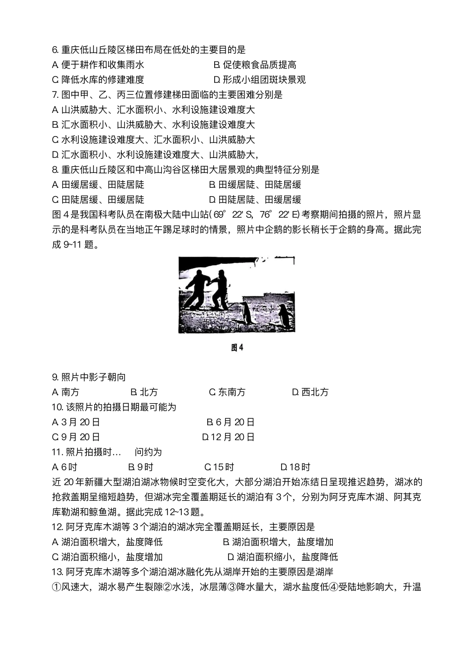 天一大联考安徽2025届高三12月联考地理试题(含答案).pdf_第3页