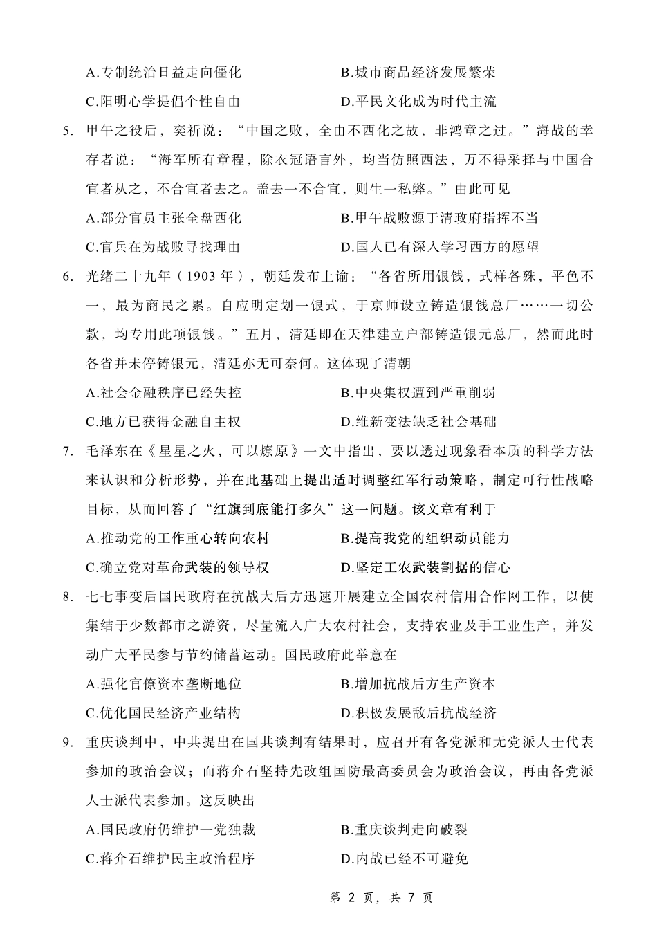 重庆市第八中学2025届高三12月适应性月考(四)历史.pdf_第2页