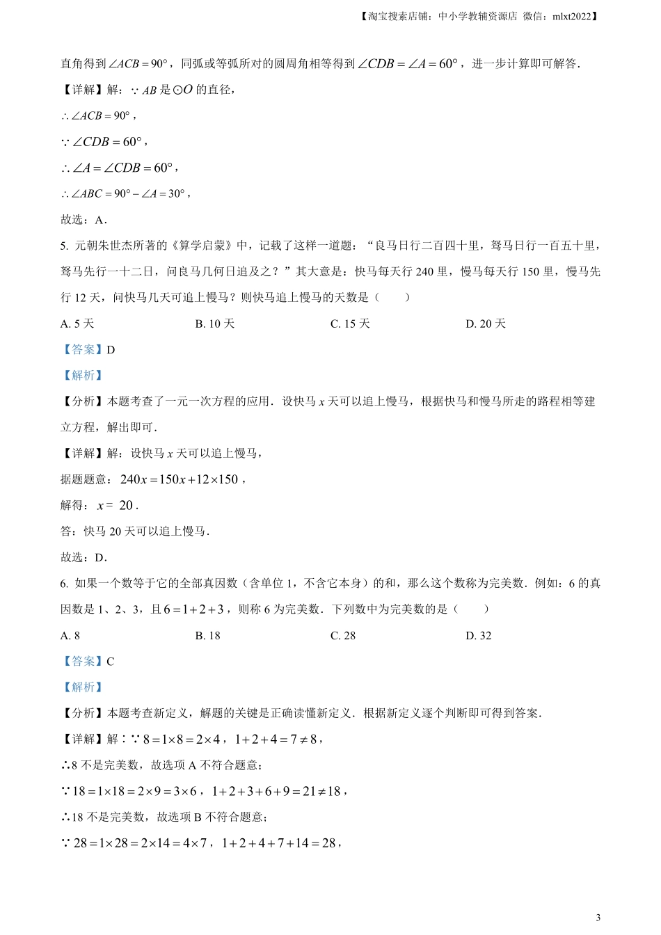 精品解析:2024年四川省宜宾市中考数学试题(解析版).pdf_第3页