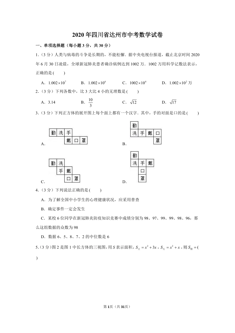 2020年四川省达州市中考数学试卷.pdf_第2页