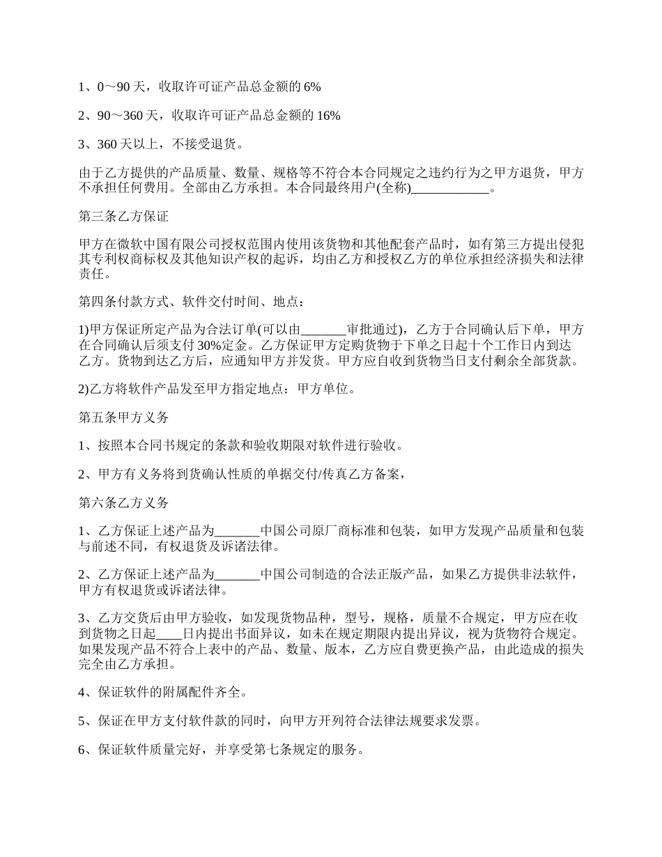 软件购买合同范本甲方:_______________乙方:_______________甲方向乙方购买分销之_______(中国)有限公司产品之事宜,双方经协商一致,达成下述合同条款,共同遵守执行。第一条总则1、定义1)合同:除非特别说明...
