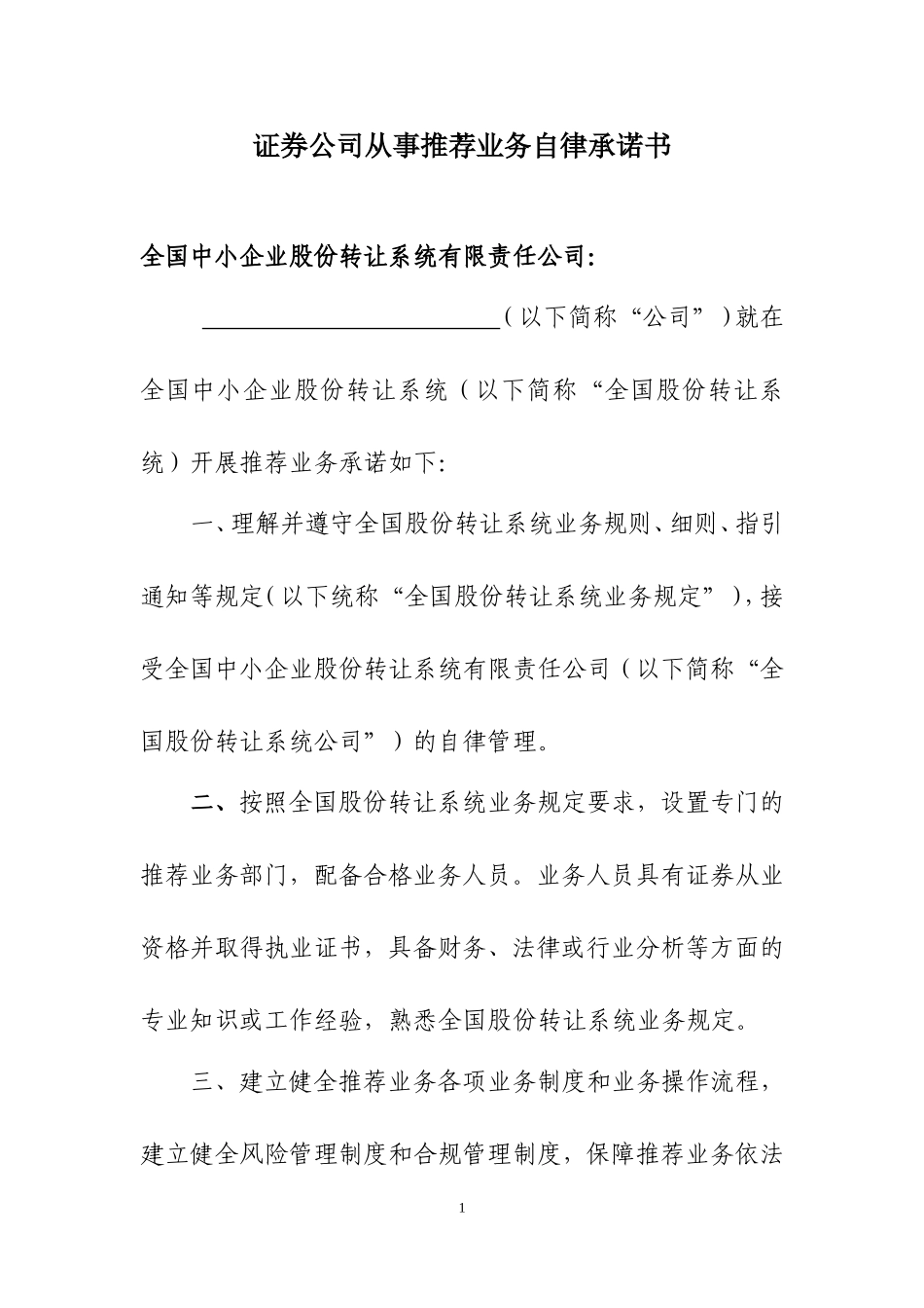 9-证券公司从事推荐业务自律承诺书.doc_第1页