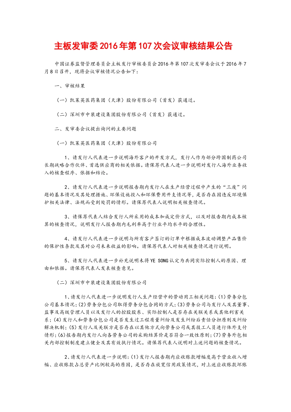 主板发审委2016年第107次会议审核结果公告  .doc_第1页