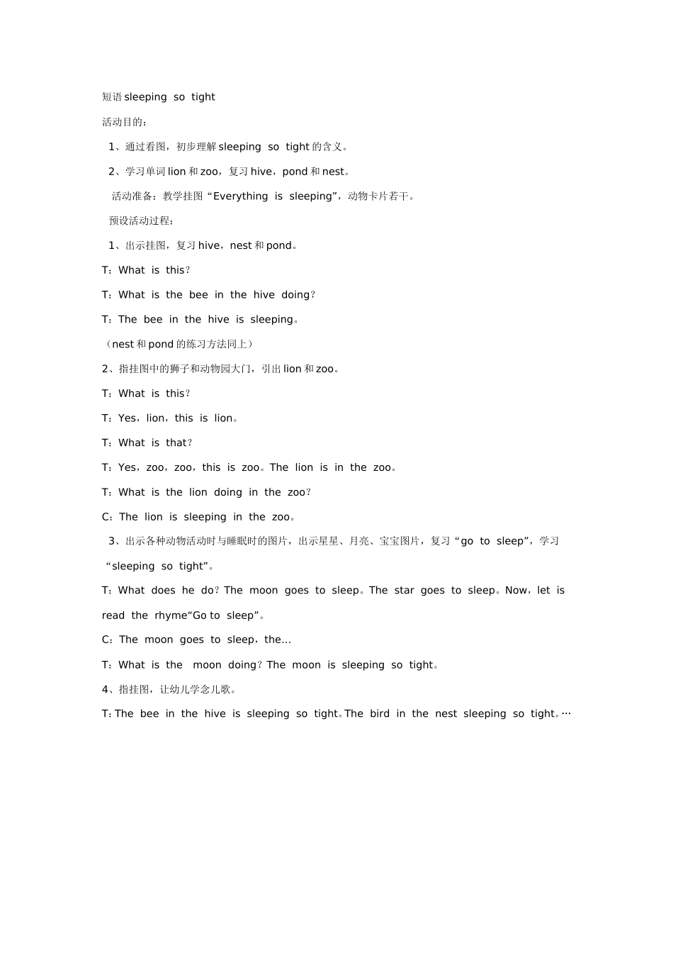 中班短语sleeping so tight.doc